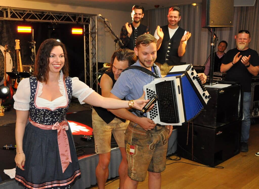 Auf das gemütliche „Meet and Great“ am Ankunfts-Abend, an dem auch die gesamte OGV-Familie entsprechend wertschätzend vor den Vorhang geholt und musikalisch begleitet wurde, folgte am Freitag Vormittag bei wolkenlosem Spätherbst-Wetter eine gemütliche Panorama-Schifffahrt vom Hafen Mali Losinj aus, begleitet von schwungvollen Melodien der Combo-Liveband. Ein gemeinsamer Ausflug in das nahegelegene Mali Losinj war der Programmpunkt am Samstag-Vormittag. Das musikalische Abendprogramm in der Beach-Arena des Hotels gestalteten am Freitag-Abend „Swingtrain“, das „Oberkärntner Quintett“ sowie das bestens bekannte und beliebte „Missebner Trio“ mit der erst 18-jährigen mehrfachen Harmonika-Weltmeisterin Clara Missebner. Der Samstag-Abend wurde vom „Hohenthurner Burschengsång“ mit einigen bekannten Melodien eröffnet. Gailtaler Kirchtagslieder vor Kärntner Gästen auf einer gemütlichen Kvarner-Insel, das hat schon was, und hat auch mit gelebter Gemeinsamkeit zu tun. Musik kennt keine Grenzen… Der weitere Samstag-Abend stand programmgemäß ganz im Zeichen der jubilierenden „Combo-Liveband“, die auch bereits seit 10 Jahren erfolgreich durch die Lande zieht. Die musikalische Vielfalt der Gruppe zog mit ihrem gelungenen Mix aus volkstümlicher Musik, Oberkrainer-Anleihen, aber auch Rock und Partyhits das Publikum voll in ihren Bann. Das durchwegs trachtige Outfit der Gäste des musikalischen Abschluss-Abends war ein überaus wertvoller optischer Aufputz, der die Stimmung bald zum Kochen brachte. Einen erwartungsgemäß zusätzlichen Turbo zündete schlussendlich die 30-jährige Oberkärntner Schlagersängerin Charlien, die bereits vor Jahren mit ihrem Lied „Millionen Optionen“ den Karriere-Durchbruch schaffte. Die Moderation der drei Musikabende wurden von TV-Moderatorin Clara Ploder übernommen.