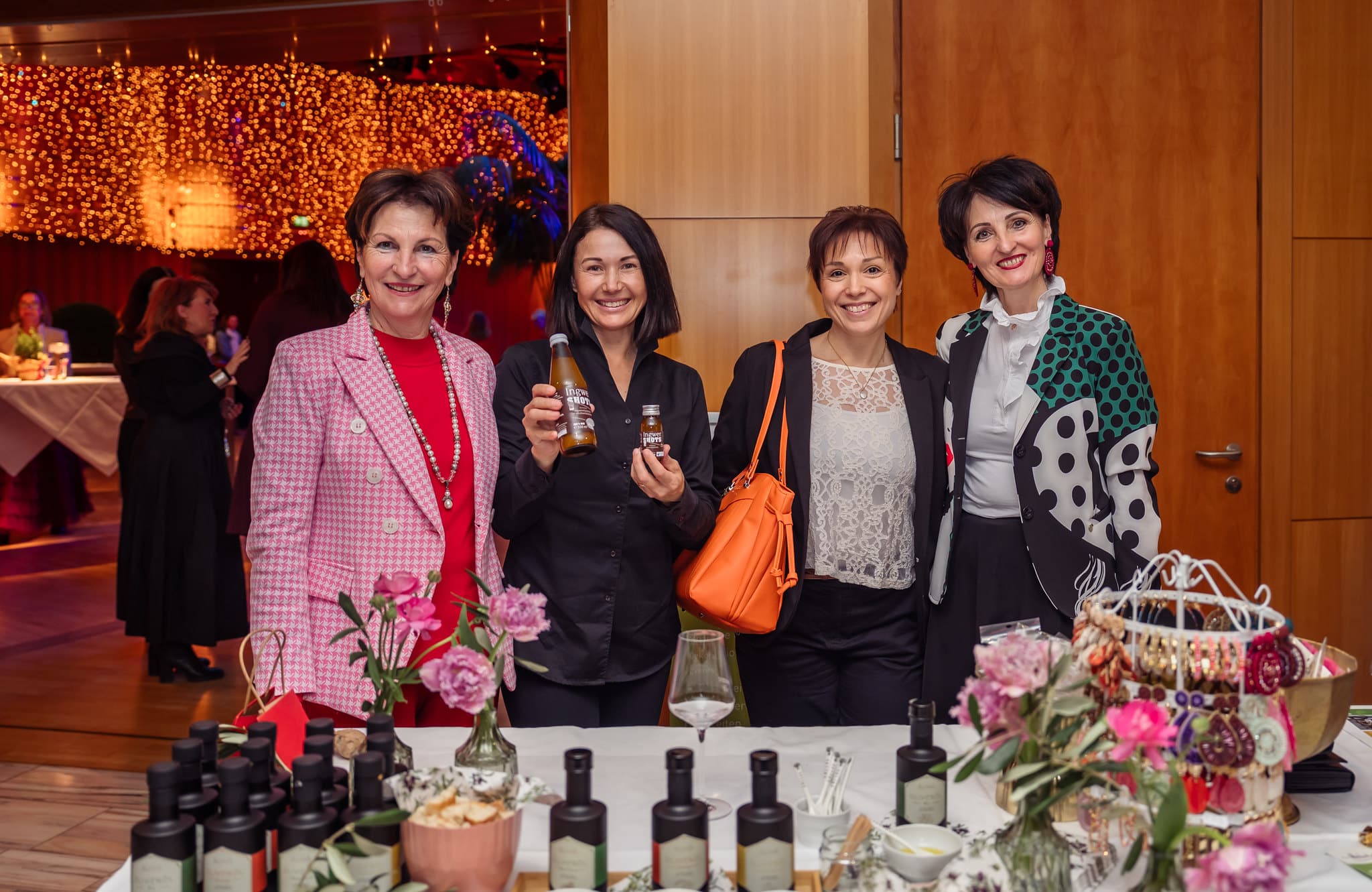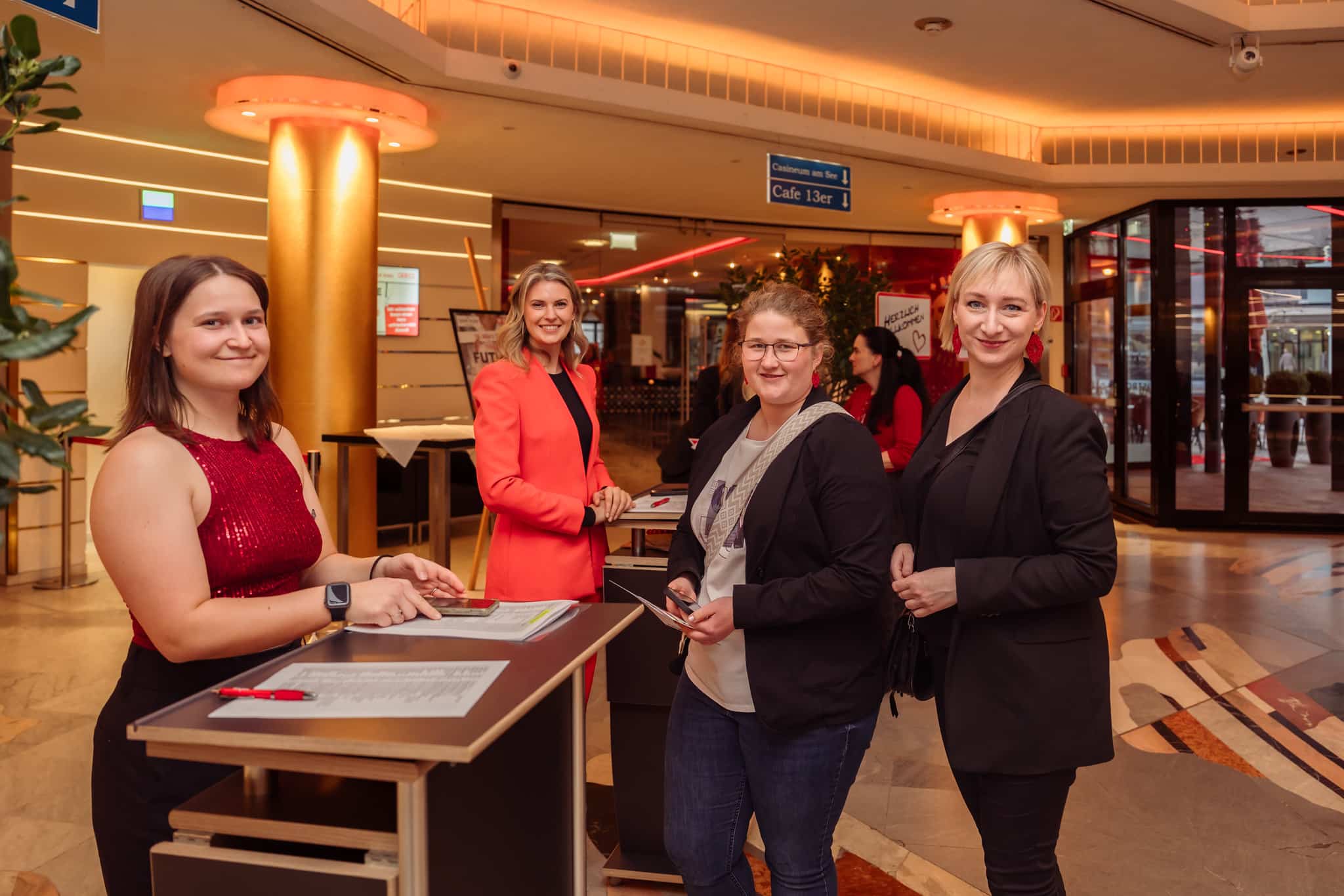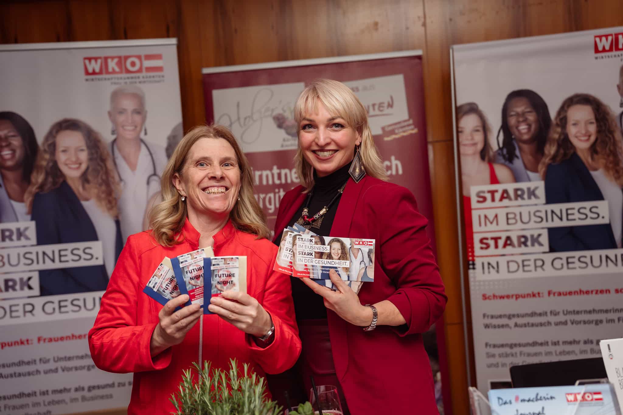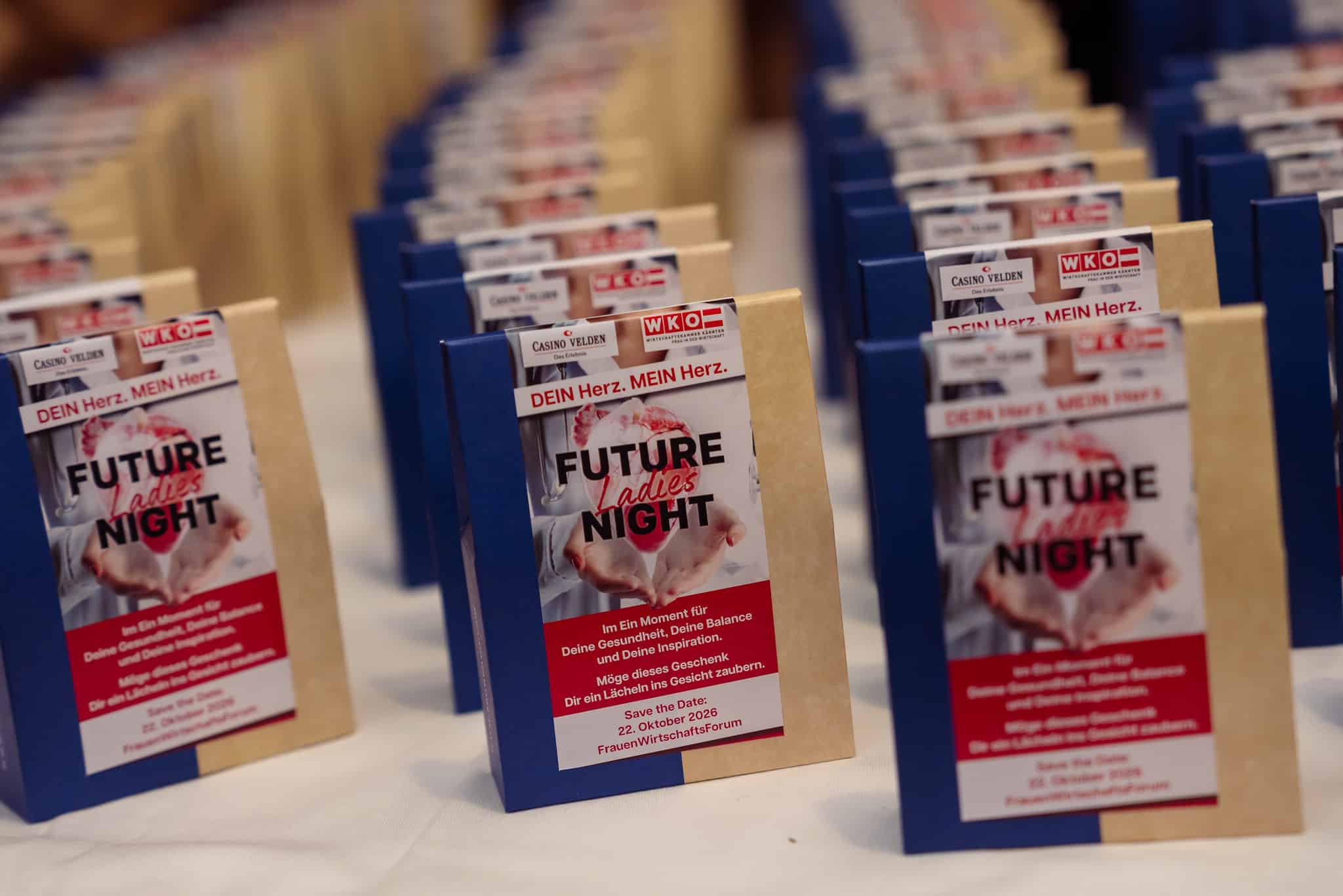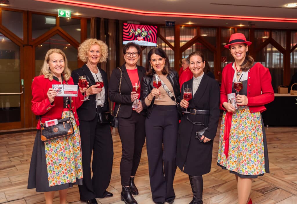 Im Foyer boten die Ausstellerinnen zahlreiche Möglichkeiten, Herzgesundheit praktisch zu erleben. So konnten die Besucherinnen bei der Lindwurm-Apotheke Klagenfurt kostenlos Langzeitblutzucker und Cholesterin messen lassen, während der Sonnentor-Shop Klagenfurt zum Tee-Verkosten, unter anderem mit dem „Frau Sein Tee“, einlud. BlumenGenuss Hasshold präsentierte hochwertige Alpha-Olivenöle, und Maja Veber bot Ingwer-Shots zum Probieren an. Biogena stellte Produkte zum Entdecken vor, und Erika Tonso präsentierte ihr Label „Eine Tasche mit Herz“ mit handgefertigten Korktaschen. Den kulinarischen Abschluss bildete herzgerechtes Fingerfood von Marcel Vanic und seinem Team. Außerdem hatten die Teilnehmerinnen die Möglichkeit, an Teststationen ihre Gesundheitswerte zu überprüfen, an einer Netzwerk-Rallye teilzunehmen und regionale Anbieterinnen kennenzulernen, während der Abend durch Herzenslieder von Sabine Neibersch begleitet und von Martina Klementin moderiert wurde.