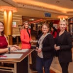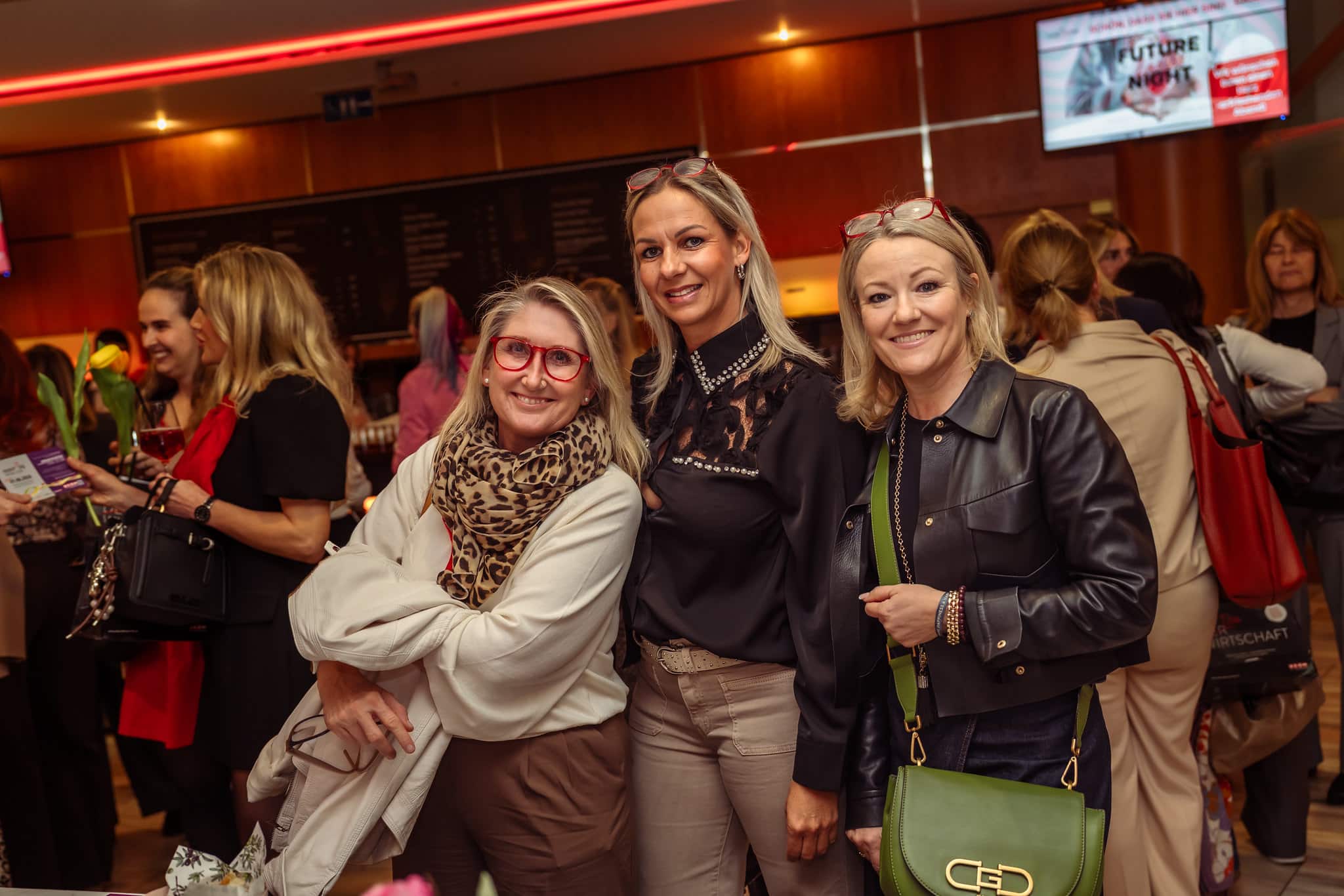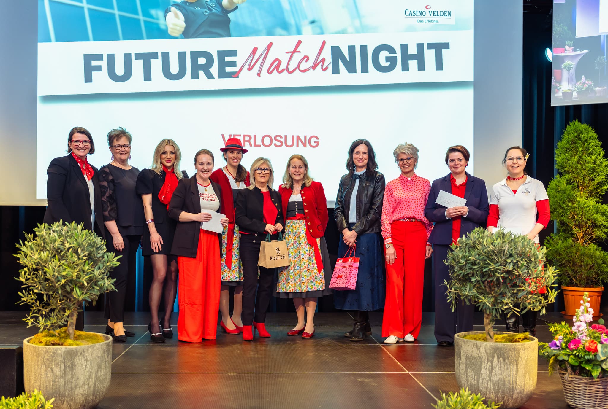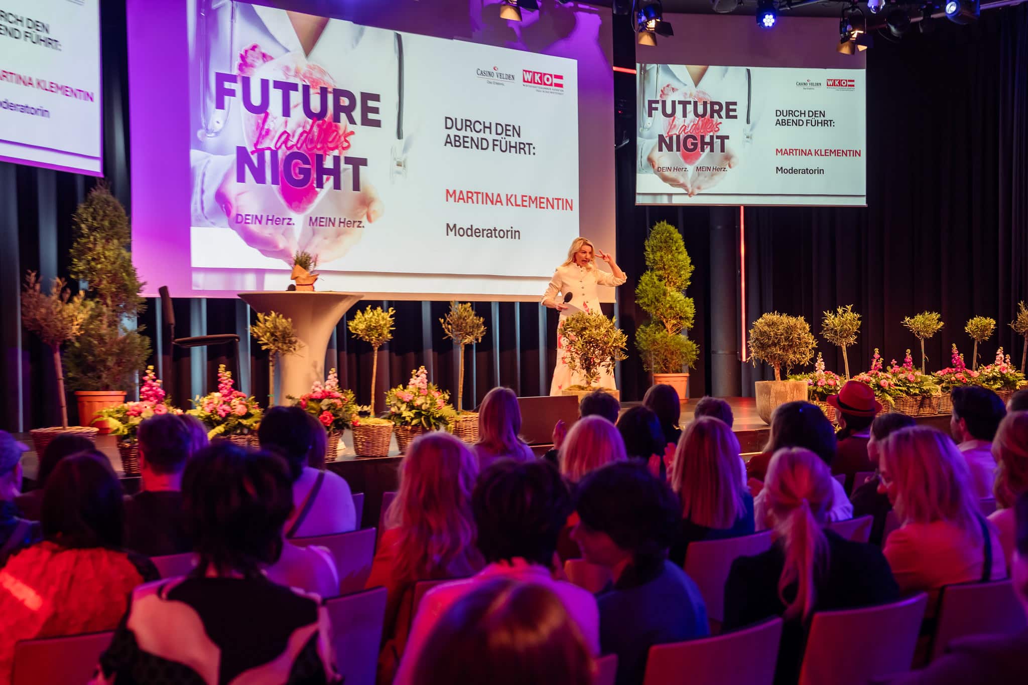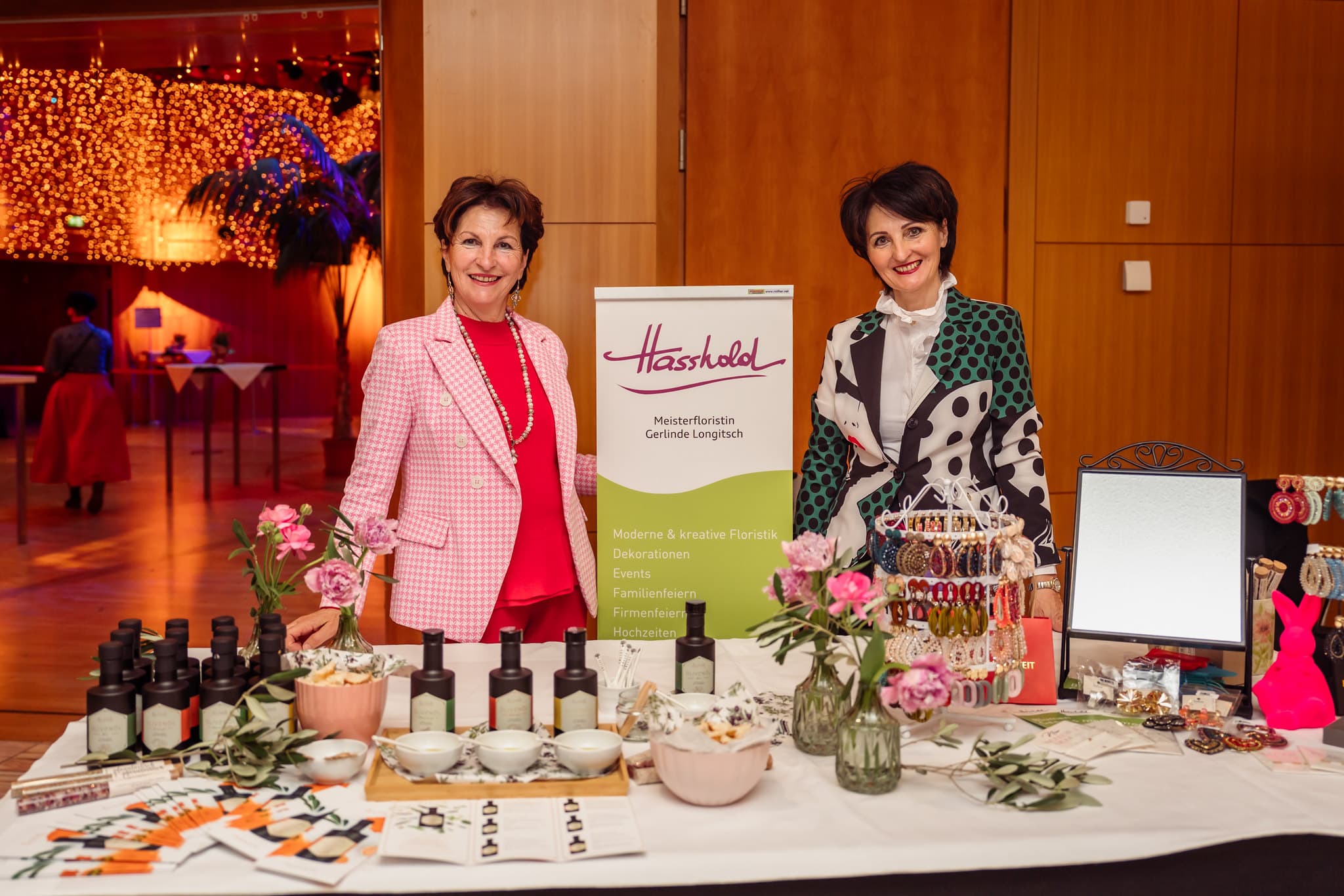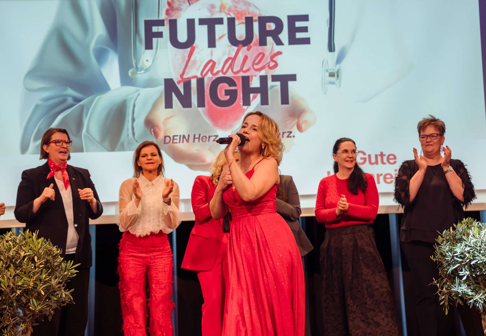 Im Foyer boten die Ausstellerinnen zahlreiche Möglichkeiten, Herzgesundheit praktisch zu erleben. So konnten die Besucherinnen bei der Lindwurm-Apotheke Klagenfurt kostenlos Langzeitblutzucker und Cholesterin messen lassen, während der Sonnentor-Shop Klagenfurt zum Tee-Verkosten, unter anderem mit dem „Frau Sein Tee“, einlud. BlumenGenuss Hasshold präsentierte hochwertige Alpha-Olivenöle, und Maja Veber bot Ingwer-Shots zum Probieren an. Biogena stellte Produkte zum Entdecken vor, und Erika Tonso präsentierte ihr Label „Eine Tasche mit Herz“ mit handgefertigten Korktaschen. Den kulinarischen Abschluss bildete herzgerechtes Fingerfood von Marcel Vanic und seinem Team. Außerdem hatten die Teilnehmerinnen die Möglichkeit, an Teststationen ihre Gesundheitswerte zu überprüfen, an einer Netzwerk-Rallye teilzunehmen und regionale Anbieterinnen kennenzulernen, während der Abend durch Herzenslieder von Sabine Neibersch begleitet und von Martina Klementin moderiert wurde.