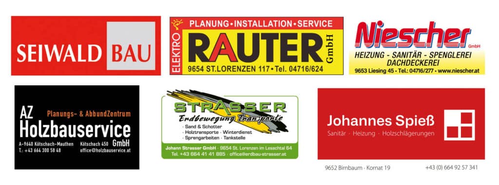 Die Rohbauarbeiten inklusive Aushub und Erdbau erledigte Seiwald Bau GmbH mit ihrem Sitz in Kötschach. Allgemeine Erdbauarbeiten übernahm Erdbau Johann Strasser aus St. Lorenzen im Lesachtal. Die Holzbauarbeiten sowie die Ausarbeitung und der Abbund der Holzbauteile wurden von der Firma AZ-Holzbauservice aus Kötschach durchgeführt. Elektroinstallationen wurden von Elektro Rauter GmbH ebenfalls aus St. Lorenzen ausgeführt. Wasser- und Sanitärinstallationen, Edelstahl-Arbeitsflächen, Waschautomat, Kühlschrank und Dunstabzug stammen von Sanitär-, Heizungs- und Lüftungstechnik Johannes Spieß in Birnbaum. Die Dachdecker- und Spenglerarbeiten wurden von der Firma Niescher GmbH aus Liesing ausgeführt.