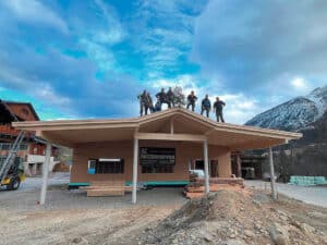 Bereits vor etwa vier Jahren begannen verschiedene Initiatoren der örtlichen Vereine, sich über eine neue Veranstaltungsstätte Gedanken zu machen; die bisherige Baulichkeit war uralt und einfach nicht mehr passend. Natürlich stand dabei die Frage der Finanzierung permanent im Fokus. Namentlich FF-Kommandant Johann Huber und Kapellmeister Heribert Spieß dürfen in diesem Zusammenhang in der entscheidenden Phase als treibende Kräfte erwähnt werden. In Gesprächen mit Vizebürgermeister Bernhard Knotz, Holzbringungsunternehmer in Birnbaum, konnte eine Lösung gefunden werden, sodass das Projekt über die Gemeinde Lesachtal als Bauherr abgewickelt wird. Der Baubeschluss der Gemeinde erfolgte im Dezember 2023, die Förderzusage im August 2024, sodass schließlich im November 2024 mit den Arbeiten begonnen werden konnte. Für die konkrete Planung, Bauleitung und bauliche Gesamtkoordination brachte sich von Anfang an Christian Seiwald engagiert und erfolgreich ein. Ein herzliches Dankeschön gilt auch Plancompany-Chef Klaus Lederer. Als mitfinanzierende Vereine unterstützten das Projekt die Bauernkapelle Birnbaum, die Feuerwehr Birnbaum, die Birnbaumer Jugend, der Frauenmix Birnbaum sowie die Nachbarschaften Kornat, Ochsenalm Kornat, Wodmaier, Nostra und Mattling.