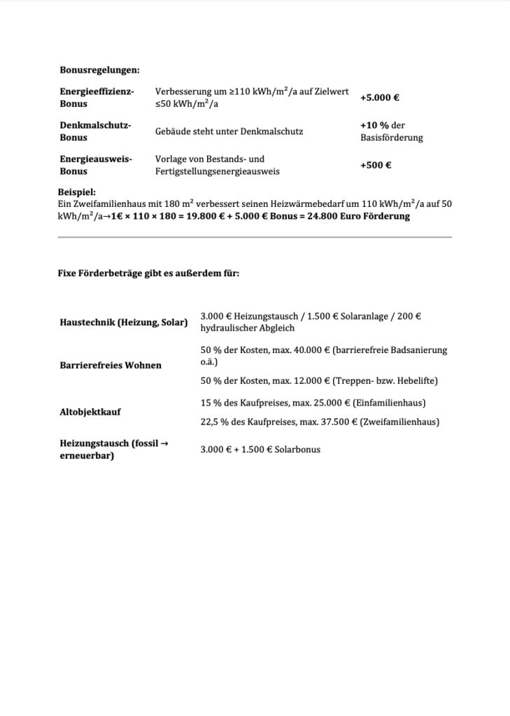 Zusätzliche Bonusregelungen honorieren ambitionierte Sanierungen: Wer besonders hohe Effizienz erreicht, kann bis zu 5.000 Euro extra erhalten. Für denkmalgeschützte Gebäude gibt es einen Zuschlag von zehn Prozent. „Die Förderung ist vollständig digital abwickelbar, flexibel für Einzelmaßnahmen oder Gesamtsanierungen nutzbar und wird nach Durchführung der Maßnahmen beantragt“, so Lintner. Startschuss ist der 1. 1. 2026.
