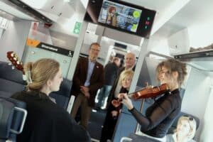 Die Premierenfahrt der Westbahn stand unter dem Motto „Kunst und Kultur auf Schiene in Kärnten/Koroška“. Zahlreiche Kärntner Künstlerinnen und Künstler gestalteten die mit Kultursujets gebrandeten Züge für die geladenen Gäste. Einen Zwischenstopp legte der Premierenzug am Bahnhof Klagenfurt ein, wo er von Landeshauptmann Peter Kaiser, LHStv.in Gaby Schaunig sowie den Landesräten Sebastian Schuschnig und Daniel Fellner empfangen wurde. Begleitet wurde der Empfang von der Stadttheater-Kapelle und einer Performance des Theaterpferds, die die kulturelle Vielfalt Kärntens widerspiegelten.