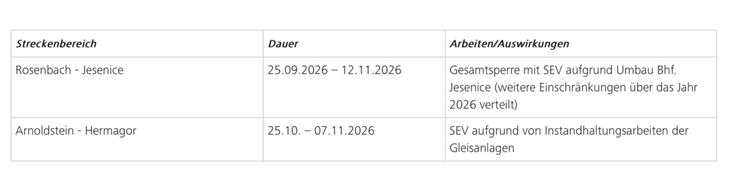 Das Herzstück auf der Tauernstrecke, der 8371 Meter lange Tauerntunnel, wurde im Jahr 1909 in Betrieb genommen. Sein letztes Update, bei dem die Tunnelsicherheit und Gleisbauarbeiten im Vordergrund standen, erhielt er 2004. Rund 20 Jahre später muss der Tunnel modernisiert und für die nächsten Jahrzehnte leistungsfähig gemacht werden, das passiert in zwei Etappen. 2026 starten bereits die Vorbereitungen für die zweite Sperrphase des Tauerntunnels, die gleichzeitig mit der DB-Sperre zwischen Rosenheim und Salzburg von Anfang Februar bis Anfang Juli 2027 umgesetzt wird. Durch diese Bündelung der Arbeiten können die Auswirkungen auf den Zugverkehr deutlich verringert werden. Damit steht den Fahrgästen in Zukunft eine modernisierte Bahnverbindung zwischen Salzburg und Kärnten zur Verfügung.