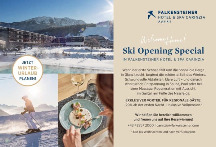 Ob schwungvolle Abfahrten, klare Bergluft oder einfach nur das stille Innehalten in einer traumhaften Winterkulisse – der Saisonstart lädt ein, Körper und Geist zu beleben. Und nach einem Tag im Schnee wartet das großzügige Acquapura SPA mit Saunen, Pools und wohltuenden Massagen auf Sie. Regeneration auf höchstem Niveau – mitten im Gailtal.